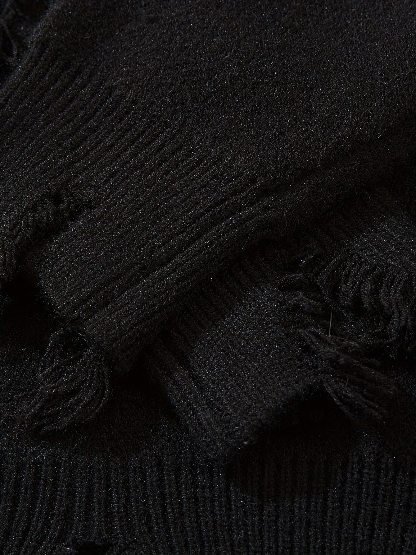 ANDREILEE Unisex Skull Print Crew Neck Sweater, Street Style Acrylic Blend, Loose Fit, Long Sleeve, Ripped Tassel Detail, Knit Pullovers for Fall/Winter