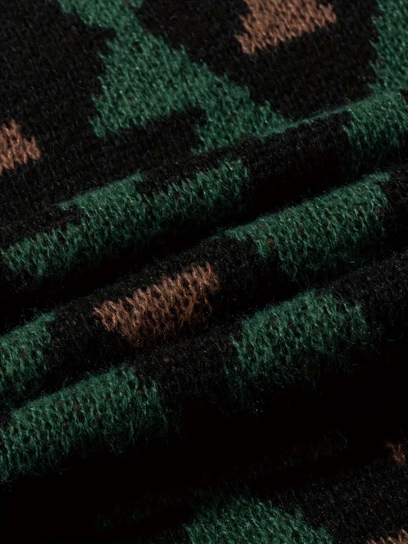 Men's Casual Geometric Pattern Knit Sweater - Asymmetrical Design, Machine Washable, Round Neck, Regular Fit for Autumn/Winter, Brown/Red/Black/White/Gray, Knit Sweater, Winter Warm Top, Autumn Fashion, Relaxed Fashion, Comfortable Wear, Durable Fabric