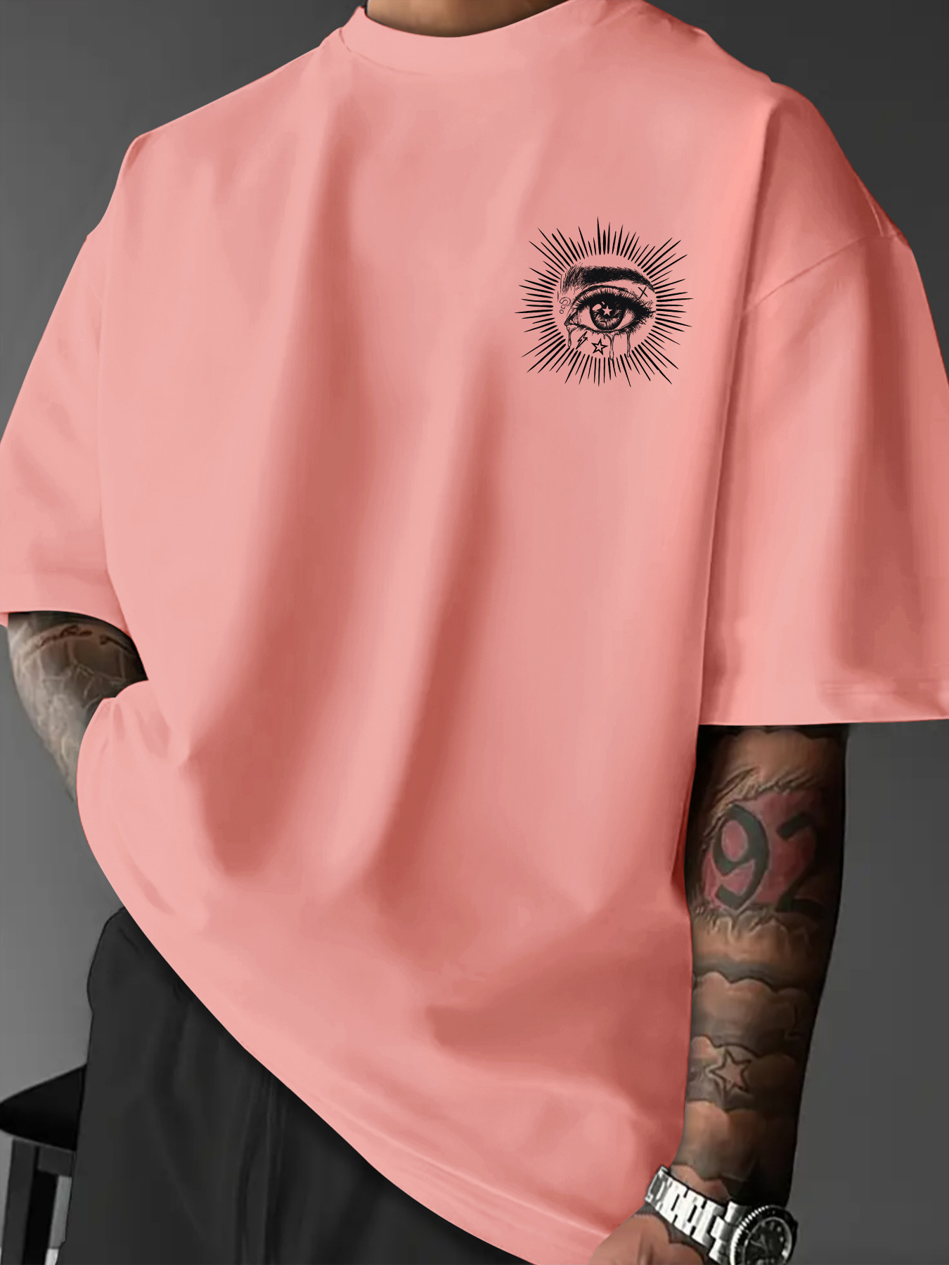 Men'S Summer Casual T-Shirt with Dark Art Eye & Hand Print, Lightweight Polyester, Quick-Dry & Machine Washable, Loose Fit for Outdoor Sports & Social Gatherings, Streetwear Style, Round Neck, Breathable Fabric