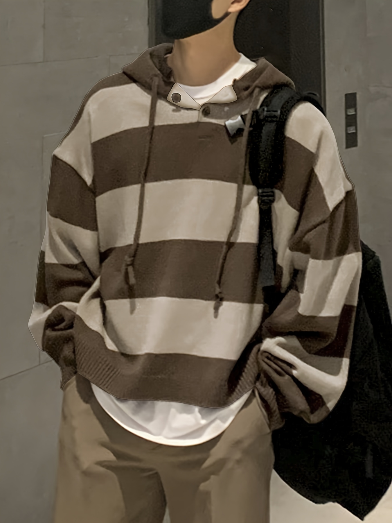 [Oversized Hooded Sweatshirt] Oversized Color-Block Hooded Sweatshirt for Men | Soft Stretch Knit Pullover with Drawstring Hood, Casual Loose Fit Long Sleeve for Autumn Winter