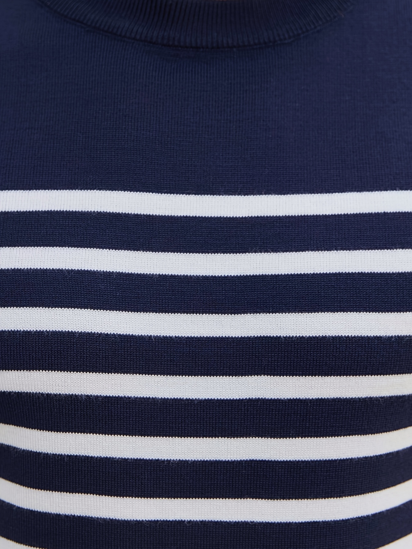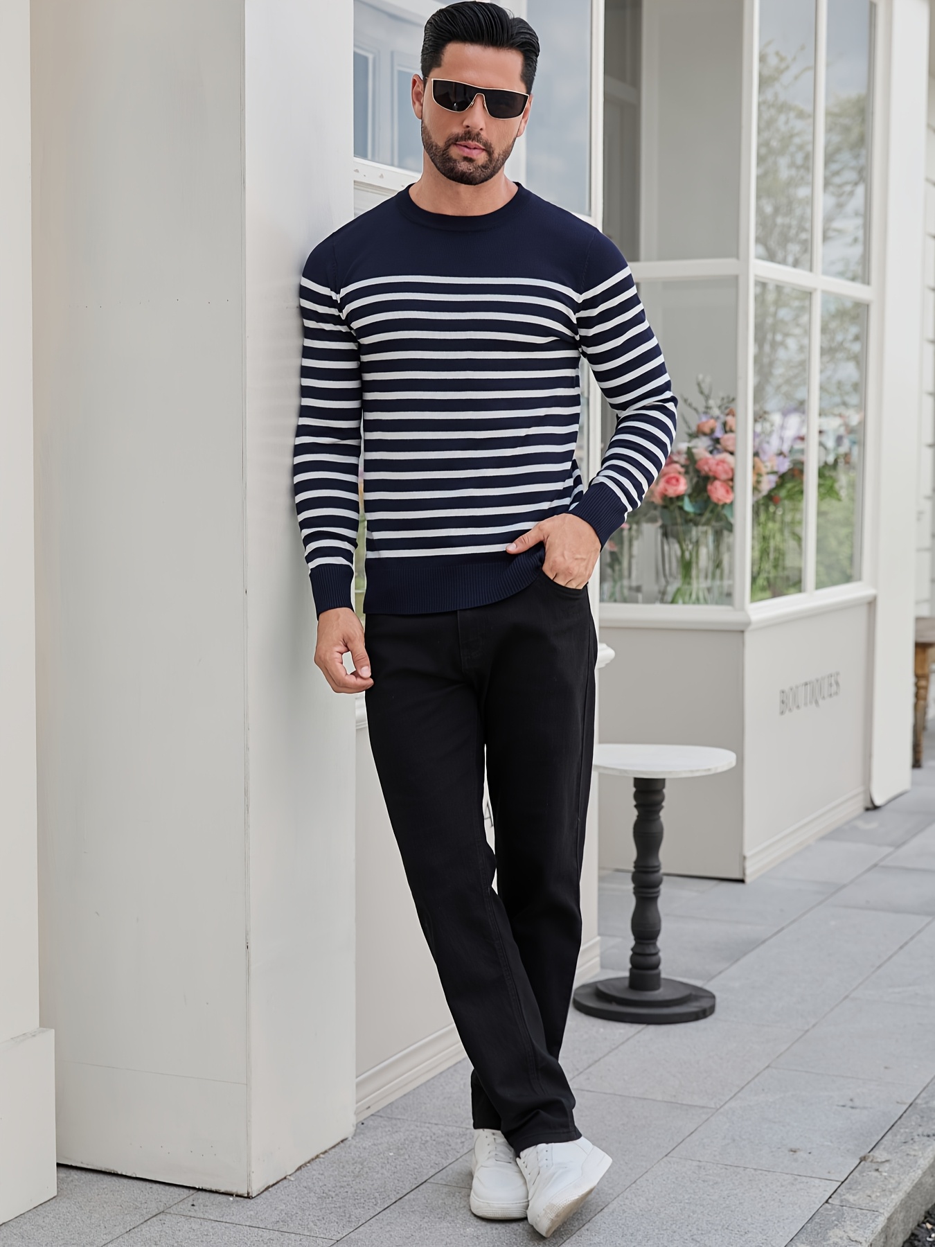 Men'S Casual Striped Knit Sweater - Navy & Vertical Stripes, Long Sleeve Crew Neck, Medium Stretch, Regular Fit for Spring/Fall, Versatile Layering Piece, Spring Fall Apparel | Classic Striped Design | Medium Stretch Fabric