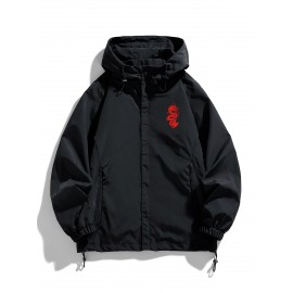 Men'S Casual Hooded Windbreaker Jacket with Star Design - Black, Long Sleeve, Zippered, Polyester Lining, Casual Outdoor Wear for Spring and Fall, Casual Outerwear | Star Print Jacket | Adjustable Hood, Essential Jacket