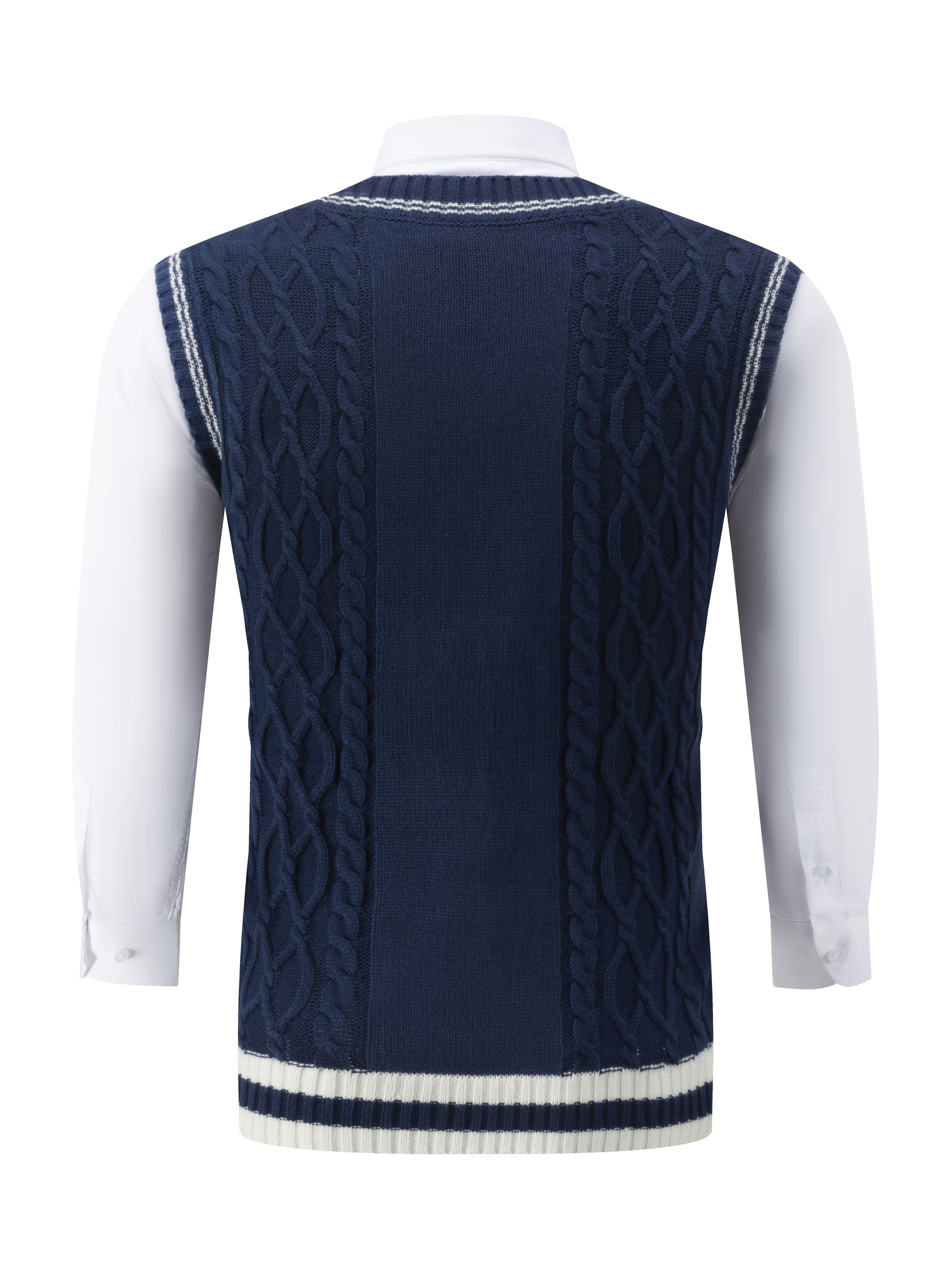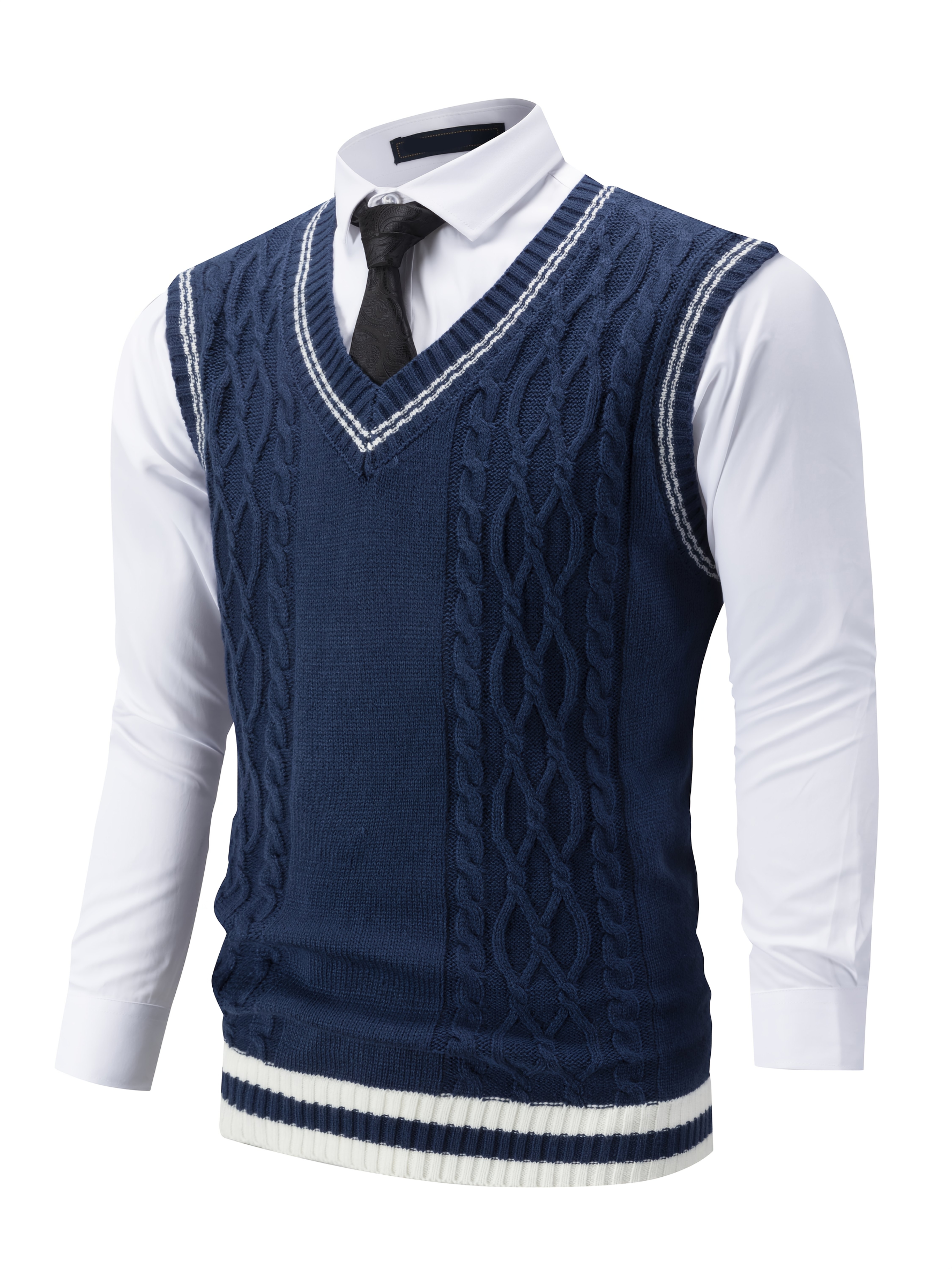 Men'S Vintage Twist Rope Pattern V-Neck Knit Vest - Cozy Acrylic Sweater Vest with Ribbed Hem, Loose Fit for Fall/Winter Casual Wear, Winter Vest | Twist Rope Design | Acrylic Knitwear